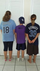 Last night we attended a major league baseball game. We went to Tropicana Field in Tampa to watch the Rays. Kyrah, Audrah and Jed wore Rays gear.
